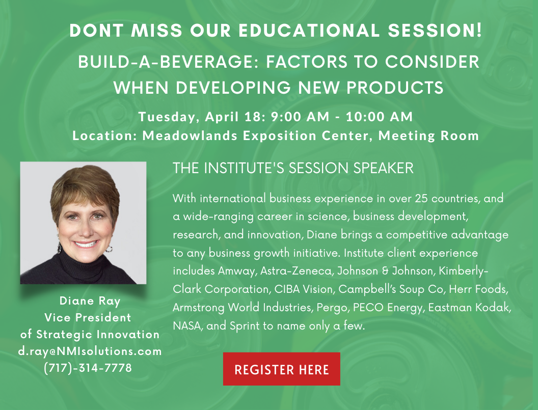 Natural Marketing Institute, a subdivision of Research America Inc., is excited to announce their participation at the SupplySide East event held at Meadowlands Exposition Center. On Tuesday, April 18th, from 9:00 AM to 10:00 AM, Diane Ray, a representative from Natural Marketing Institute, delivered an insightful education session on "Build-A-Beverage: Factors to Consider When Developing New Products."